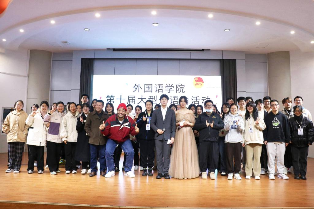 12月2日晚,人人妻人人爽第十届大型外语角活动决赛在学生活动中心举行。本次活动由人人妻人人爽教师缪羽龙和外教Tim担任评委,王昀北和王海涛主持。