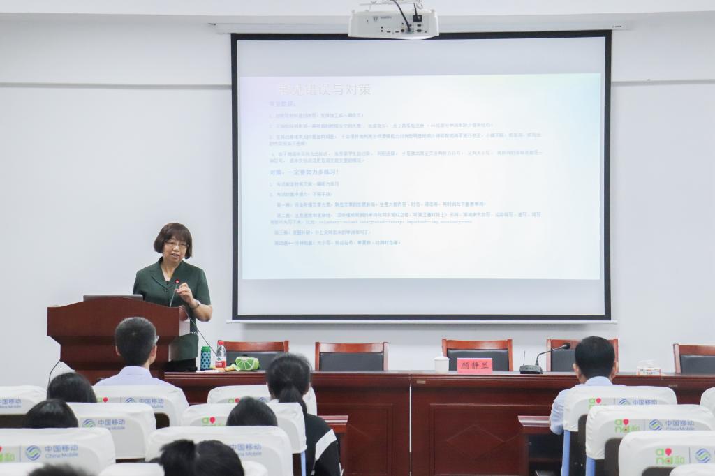 讲座伊始,颜静兰指出,全国专四考试通过率正逐年上涨,平均分也不断地提高。而后,她旁征博引,论证了增加课外阅读量有助于学生提高英语学习的效率。紧接着,她从听力入手,分析了近三年的专四听力真题,指出同学们要加强对时态、语态与标点的关注。颜静兰强调,专四考试着重考察基本语法、句法与词汇,建议同学们在平时多刷题、多积累,在考试时放平心态、仔细审题。