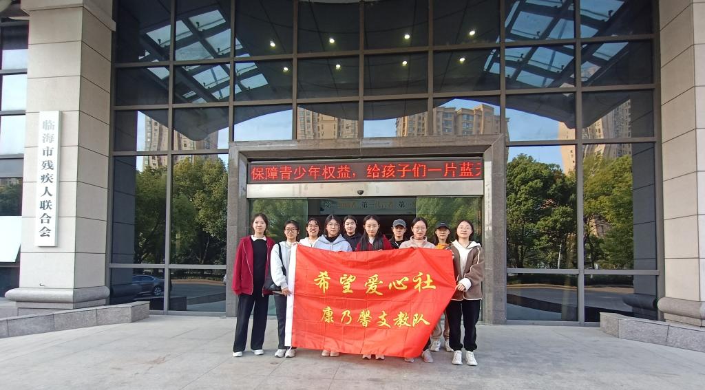 爱心社招成员在临海市残疾人联合会合影留念