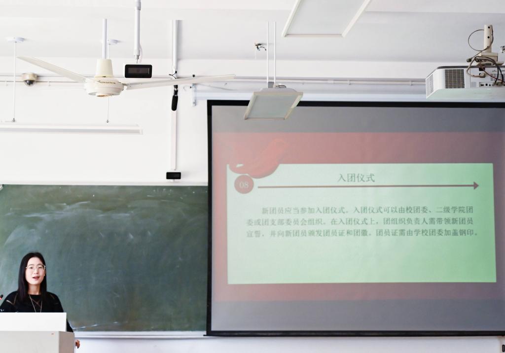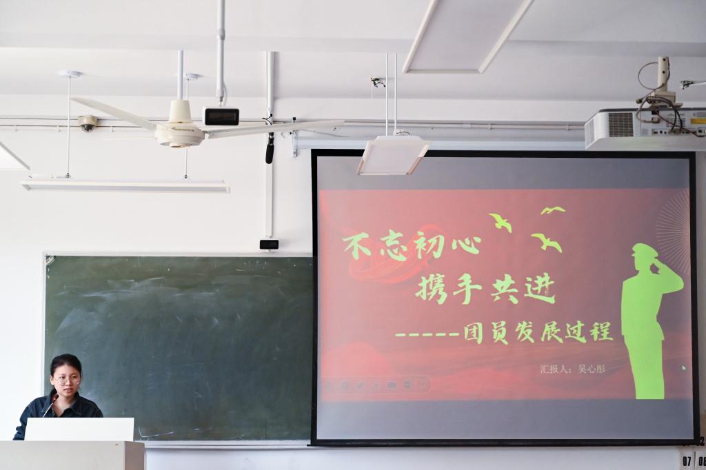 会议伊始,房佳婕传达学校第四次党代会精神,带领团支书学习了校党委书记朱坚关于《不忘初心 勇毅前行 为加快建成台州大学而团结奋斗》报告的主要内容,解读了本次党代会的重要意义。随后,由吴心彤讲述团员发展流程及要求,以及本次团员发展工作中各班团支书需要协助完成的工作任务。