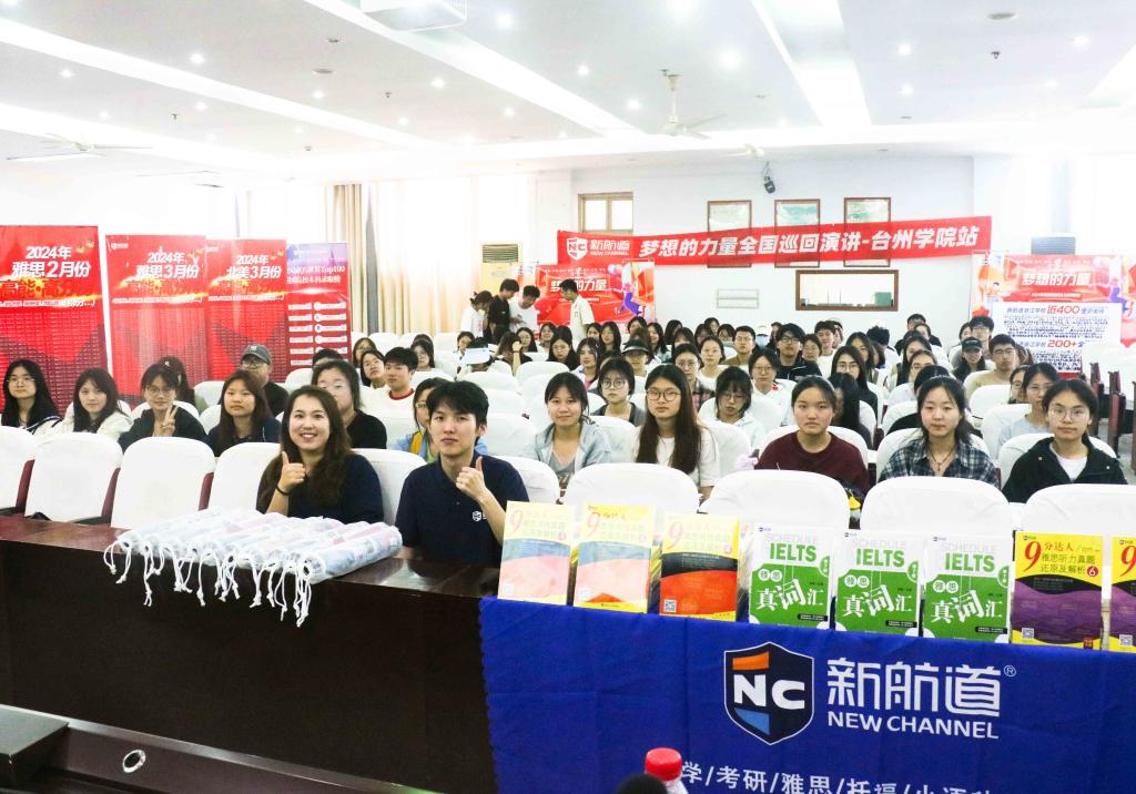 首先,陈鹏帆详细介绍新航道国际教育集团的发展历程、当前状况以及能够为台州学院学生提供的全方位服务。随后,高伟围绕“梦想的力量”这一主题展开深入剖析。她深入探讨了升学及其他更广阔发展道路的可能性,着重分析了海外考研作为多数人的选择及其背后的原因,并强调了提前规划留学事项的重要性。高伟还以自身经历为例,分享了成功路上的心得体会,并向大家推荐了一些对学习有益的方法和软件。最后,她还为大家准备了备考时间表、图书清单以及小礼品,表达了对同学们的关怀与鼓励。