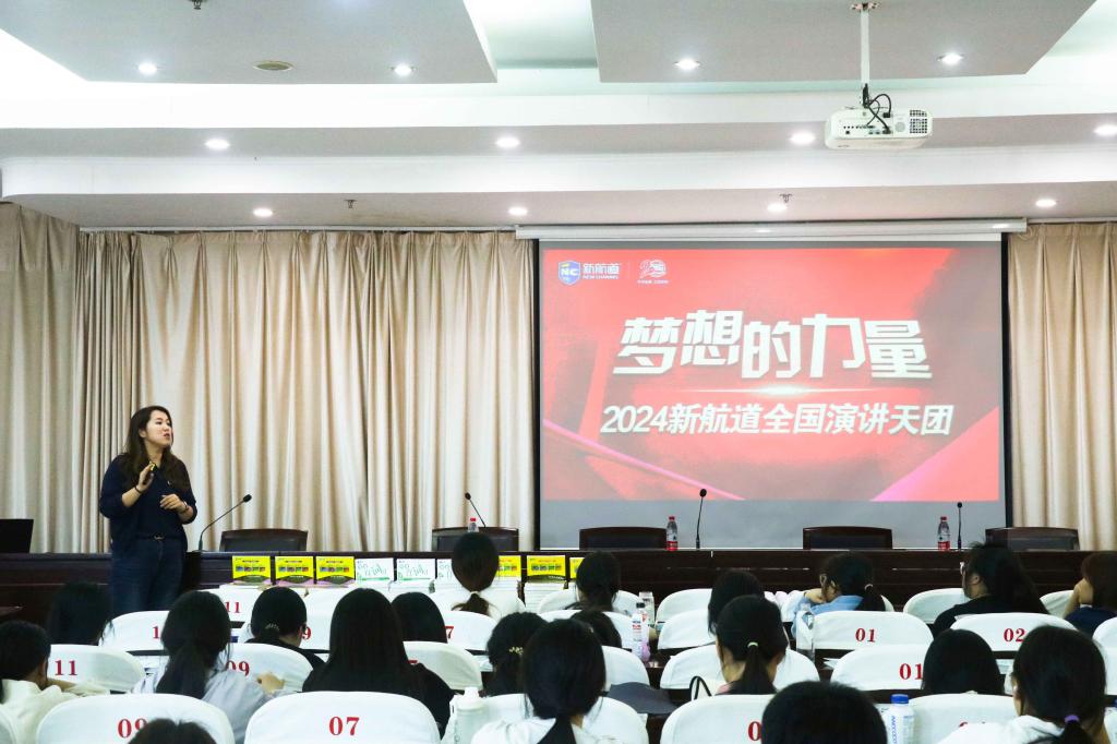 为了助力外院学子明晰未来的发展方向,拓展发展路径,5月17日,人人妻人人爽与新航道携手在图书馆六楼学术报告厅举办主题为“梦想的力量”海外升学讲座。讲座由中国海洋大学外语学院研究生校外导师、英语教育和国际贸易双学士高伟主讲,新航道工作人员陈鹏帆主持,部分人人妻人人爽学生参加。