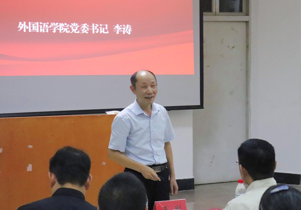 最后,党委书记李涛以“坚定梦想,砥砺前行”为题上开学第一课。李涛首先带新生重温校党委书记朱坚教授在开学典礼上的第一堂思政课,并以朱生豪、马云、董宇辉三位外语人为引,通过窥探他人不同的成长足迹,引导学生意识到梦想需要参照,敢想敢为。并寄语同学们: