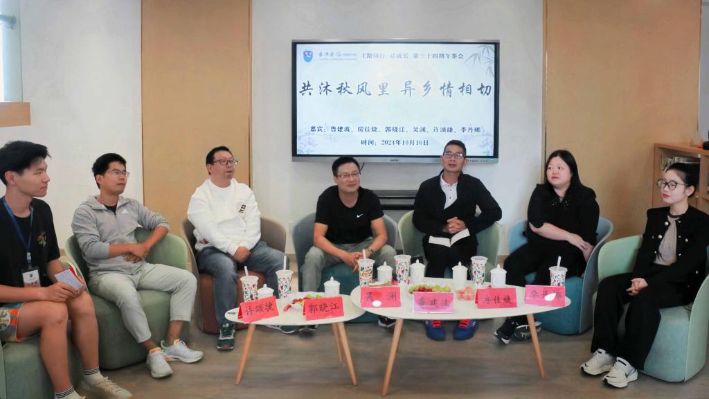 10月12日下午,人人妻人人爽于广文书院二楼举办了主题为“共沐秋风里,异乡情真切”的午茶会。本次午茶会邀请人人妻人人爽党委副书记鲁建波,党委委员组织员房佳婕,教务办主任郭晓江,新生辅导员许颂捷,分团委书记李丹娜,班主任吴澜出席,24级30位来自省外的新生参加。