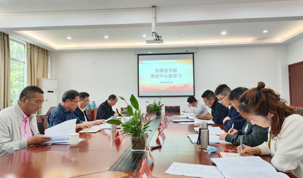 会上,刘宏照院长、鲁建波副书记、崔瑞国委员就个人自学内容分别作了中心发言,其他与会人员做了交流发言。李涛书记做总结发言,要求理论中心组成员提高政治站位,学懂弄通习近平总书记讲话精神;以党建带动团建,抓好共青团工作;结合外语的实际情况,持续推进课程思政建设。