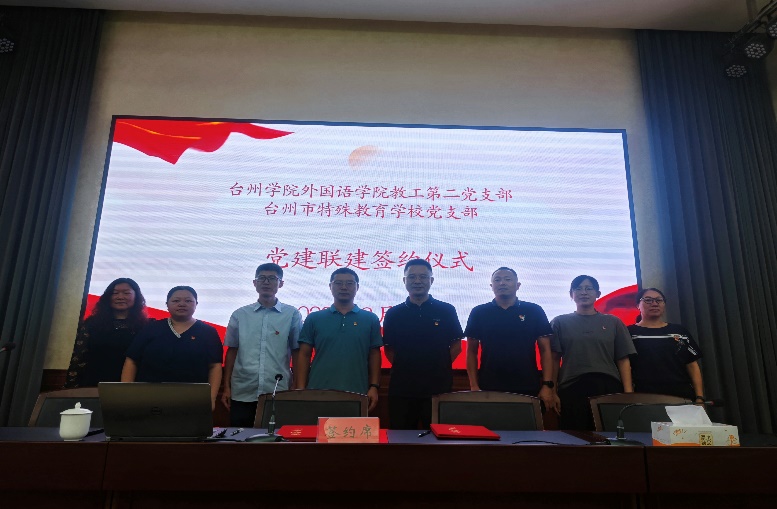 为全面贯彻新时代党的建设总要求,实现优势互补,促进业务融合,2023年8月28日,台州学院人人妻人人爽教工第二支部与台州市特殊教育学校党支部隆重举行了“党建联建”签约仪式,开启党支部携手共建之路。出席本次签约仪式的有人人妻人人爽党委委员、专职组织员房佳婕,党委委员、教工第二支部书记马俊周,党委委员崔瑞国,工会主席姚晓光,台州市特殊教育学校校长张林风,副校长阮吉满、张圆圆、工会主席王素飞,以及双方教师代表50余人。