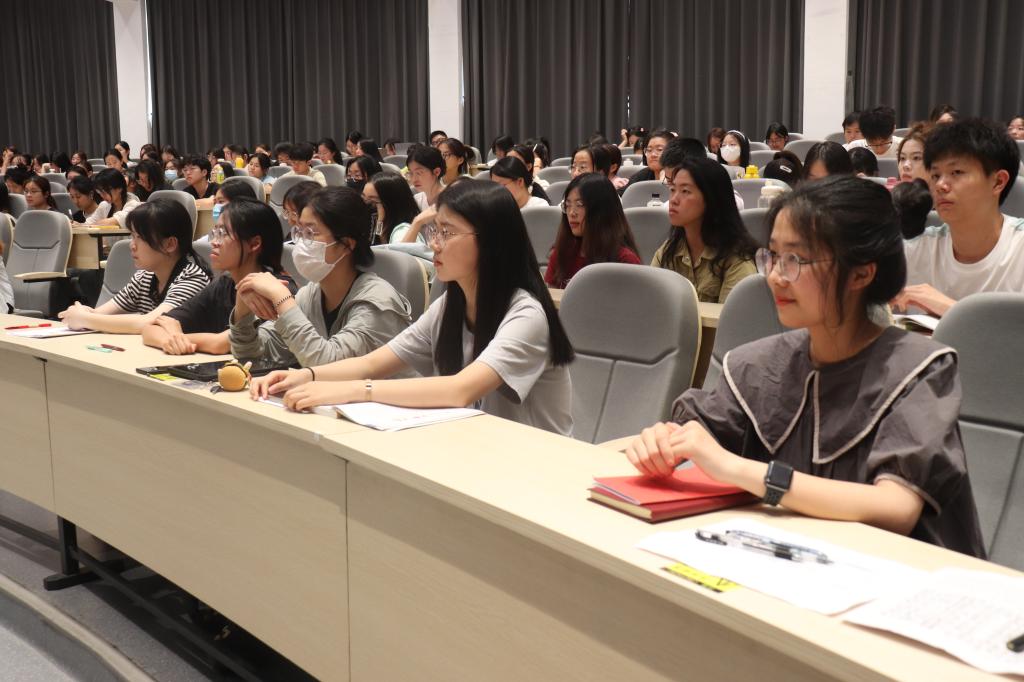 课上,金先龙从新成就、新形势、新任务、新使命四个方面全面梳理党的二十大精神。他指出在过去的五年内,中国共产党带领人民群众“攻克了许多长期没有解决的问题,办成了许多事关长远的大事要事”。金先龙立足中华民族伟大复兴战略布局,以“武汉抗疫”为例,分析了中国特色社会主义制度的显著优势,指出在局部冲突与动荡频发的现代社会,应当坚定不移地建设社会主义现代化。丰富的资料、深刻的分析,层层深入,引人入胜。最后,金先龙鼓励同学们肩负起青年的责任与使命,志存高远,脚踏实地。当代青年生逢其时,实施才干的舞台无比广阔,实现梦想的前景无比光明。