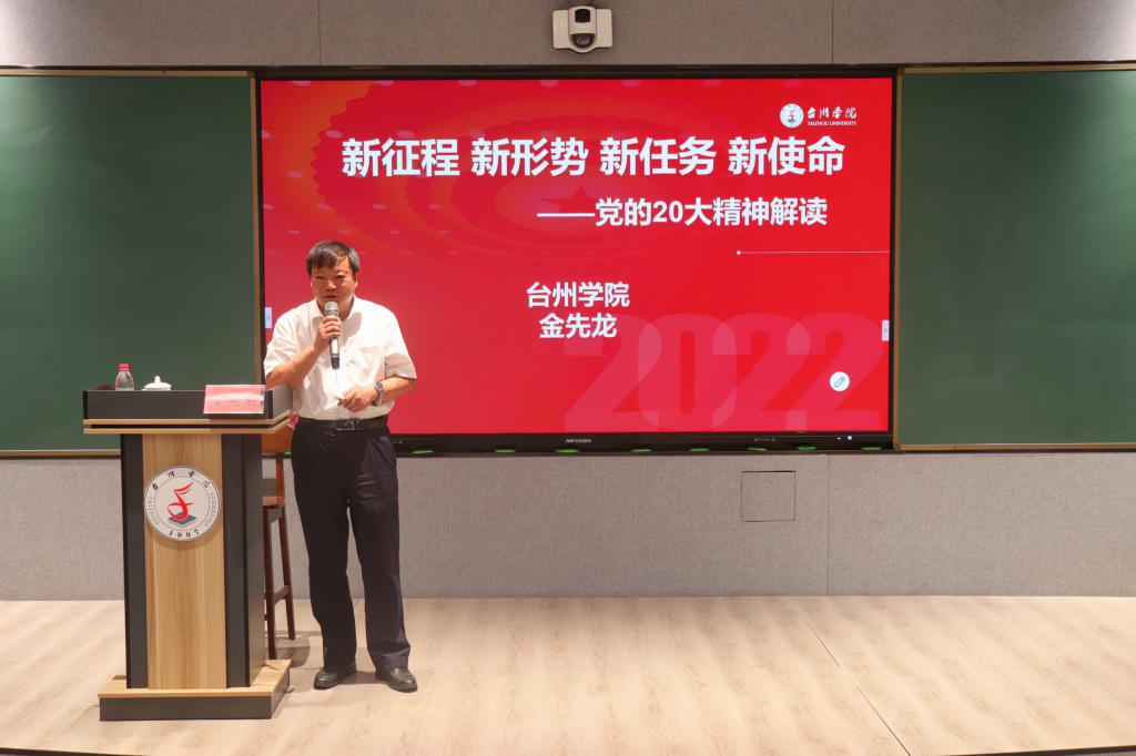 6月15日下午,台州市理论宣讲团、校党委副书记金先龙应邀为人人妻人人爽第二十二届业余党校学员上《新征程新形势新任务新使命——党的二十大精神解读》专题党课。本次党课由人人妻人人爽党委书记李涛主持。