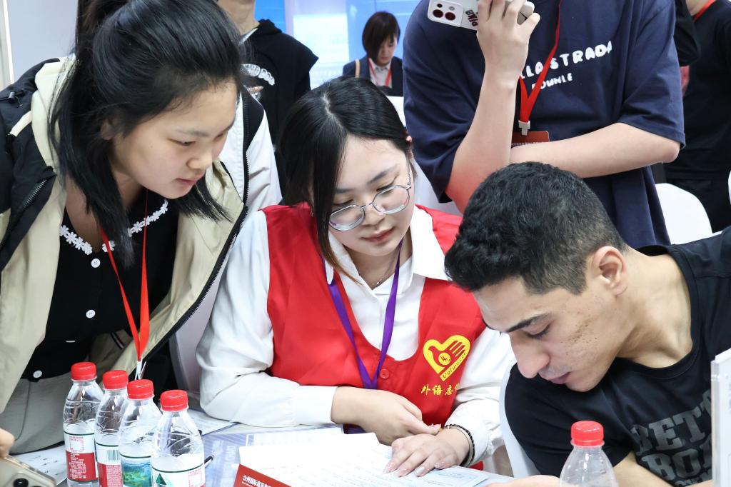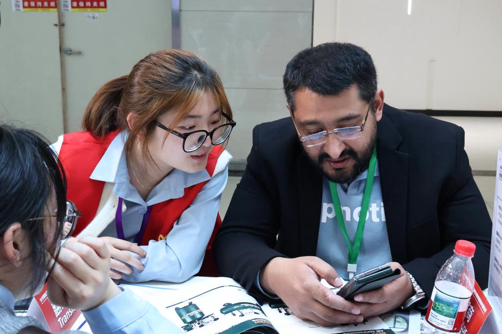 活动现场,30 余名境外采购商,与80 多家台州本土企业开展深度洽谈。学生党员陪同外商按照位置编号就座,通过一对一的形式,为采购商及供应商双方提供精准的翻译服务。在翻译过程中,每一个细节都可能影响合作,学生党员充分考虑文化差异,兼顾语言表达与文化适配,不仅为外商解读产品参数、行业标准,更深入传递中国品牌的创新理念与文化内涵。