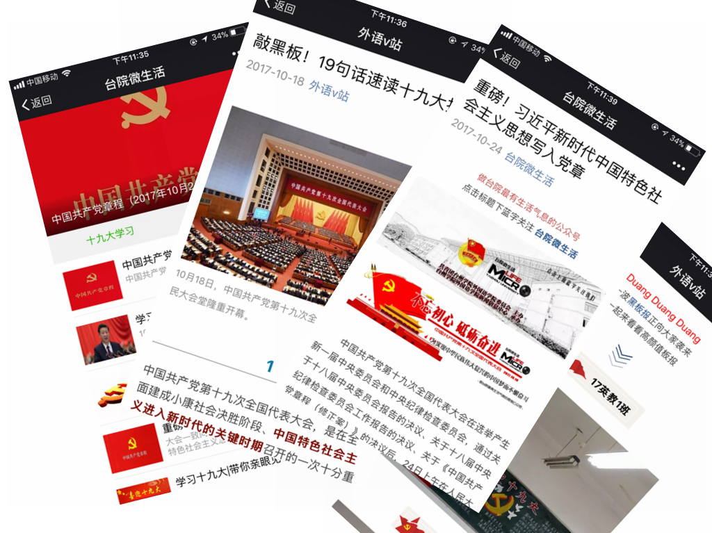 图 学院学生微信公众平台“台院微生活”“外语v站”宣传十九大精神剪影