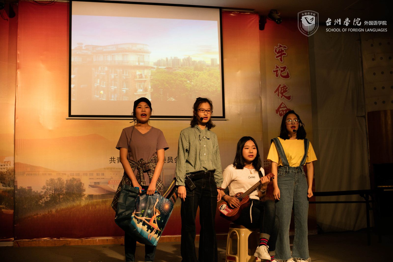 4月8日晚,人人妻人人爽2018年度团支部文化比赛在临海校区大学生活动中心举行。学院党总支副书记金宏伟,浙江省曲艺家协会会员、临海曲协主席、文化馆副馆长刘一军老师和2017级班主任、学院辅导员,以及在场的同学一起观看了演出。