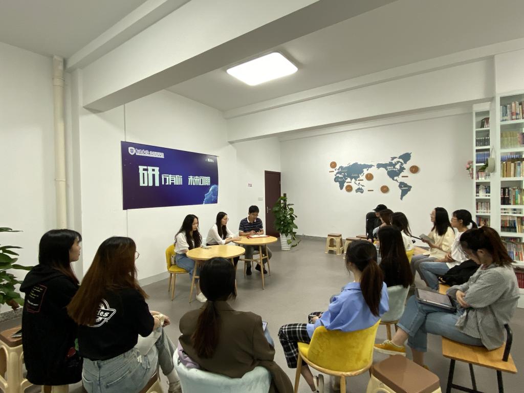 闫紫怡从择校、考试内容、复习、考研信息查找和心态五方面为切入点,细致讲解择校问题,并分享外国语言文学方向各科目的复习方法、复习资料。詹雯讲述如何在充分利用暑假时间,建立自身复习的数据库,前期复习多输入,后期做题多输出,并介绍如何保持良好心态。最后,每位同学对现阶段自己遇到的困难、存在的疑惑、复习情况逐一进行发言。