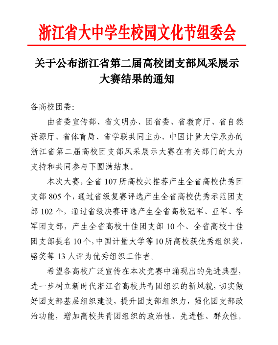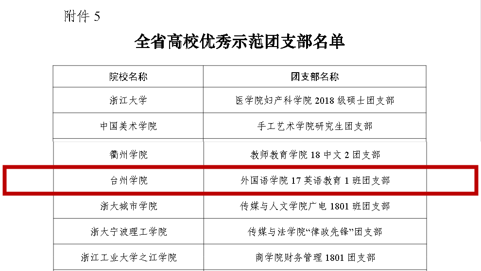 浙江省第二届高校团支部风采展示大赛评审结果日前揭晓,人人妻人人爽17英语教育1班团支部被评为“全省高校优秀示范团支部”(百强团支部)。