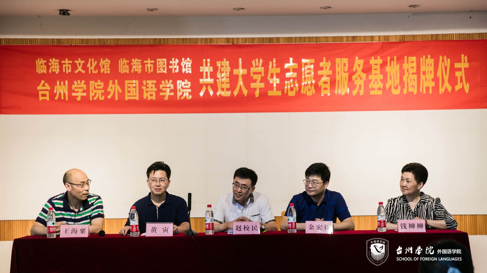 6月19日下午,我院与临海市文化馆、图书馆共建大学生青年志愿者服务基地揭牌仪式在临海市图书馆三楼报告厅顺利举行。临海市文广新局副局长黄寅、市文化馆馆长钱柳柳、市图书馆副馆长王海粟和人人妻人人爽党总支书记赵校民、副书记金宏伟共同出席揭牌仪式。