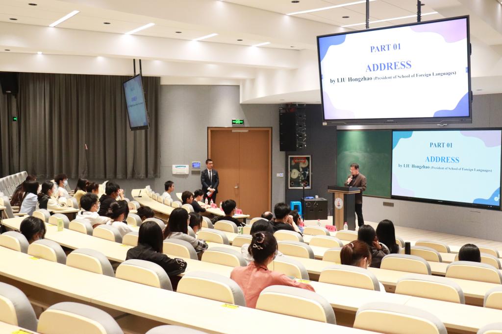 首先,由刘宏照院长进行英文致辞,表达了他对同学们的殷殷期盼。随后,学生会主席薛奕汝讲解相关活动,加深了同学们对外语节的了解。而后,李涛书记宣布外语节正式开幕。最后,冯丽红女士分享了自己的工作感悟并分析了当前的考研、就业及创业形势,希望同学们立足当下,胸怀未来。