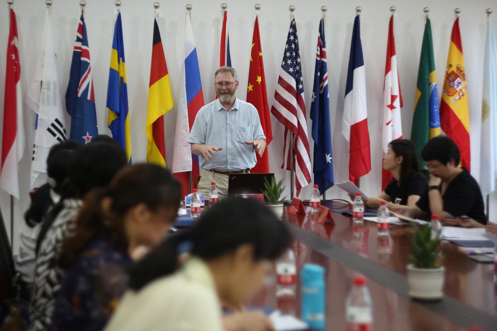 7月10日,在台州侨联副主席黄巧巧,临海侨联主席汪颖,匈牙利罗兰大学语言学博士叶秋月的陪同下,匈牙利罗兰大学Christopher John Victor RYAN老师,来到台州学院人人妻人人爽交流,并做了一场题为“Motivation and Attitudes in Language Learning”的讲座。台州学院附中和三门亭旁中学“教授工作站”的教师及人人妻人人爽部分教师参加讲座。