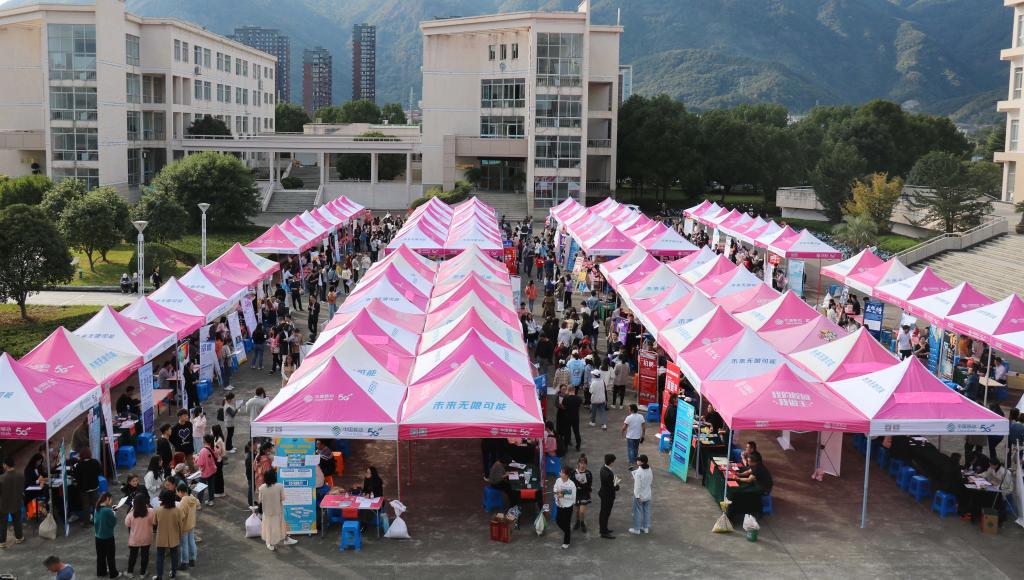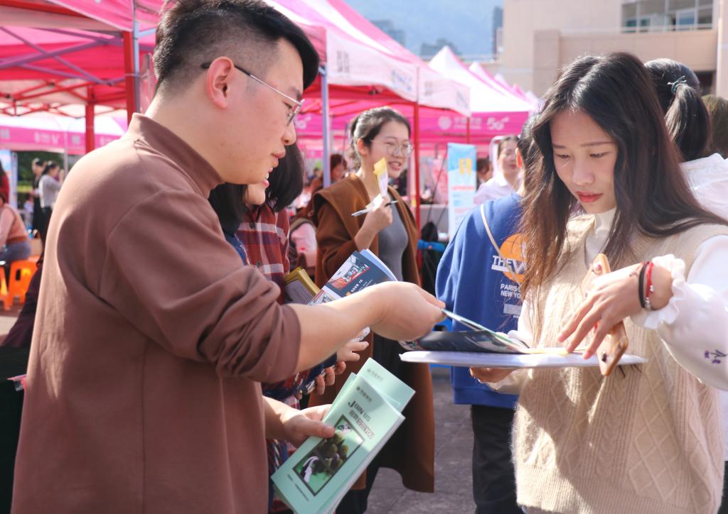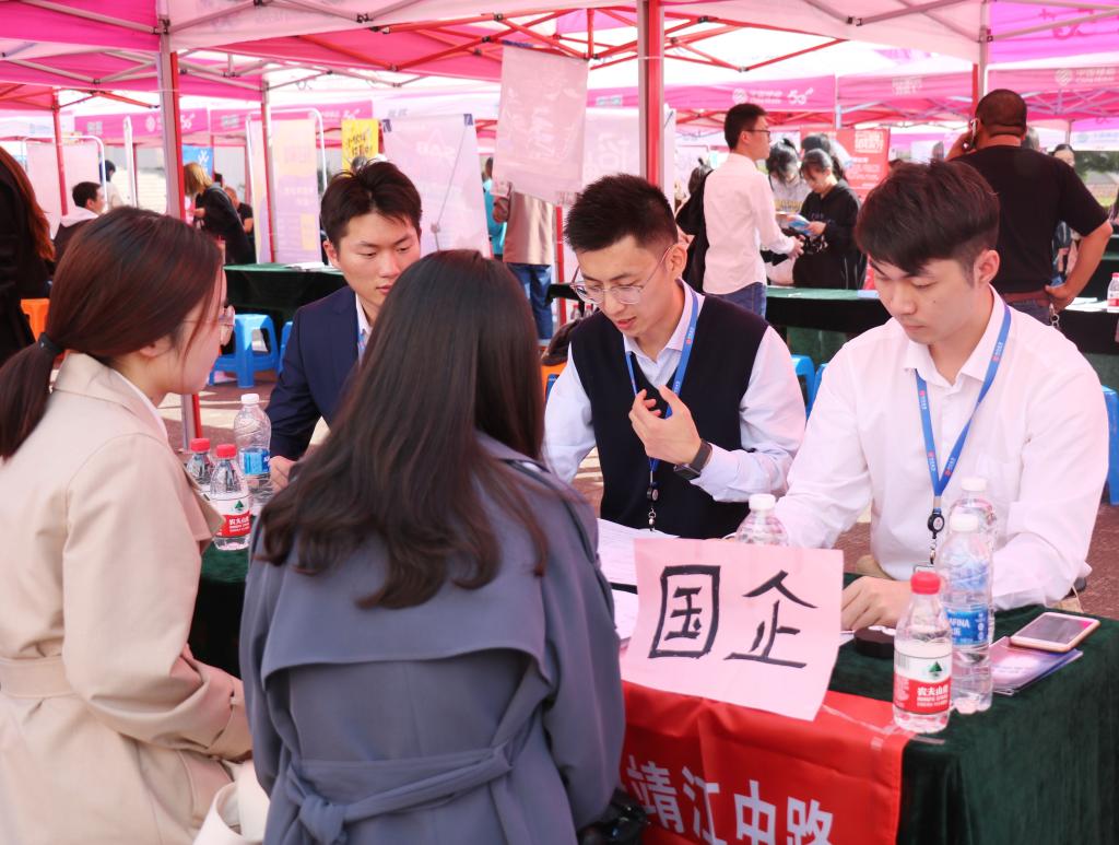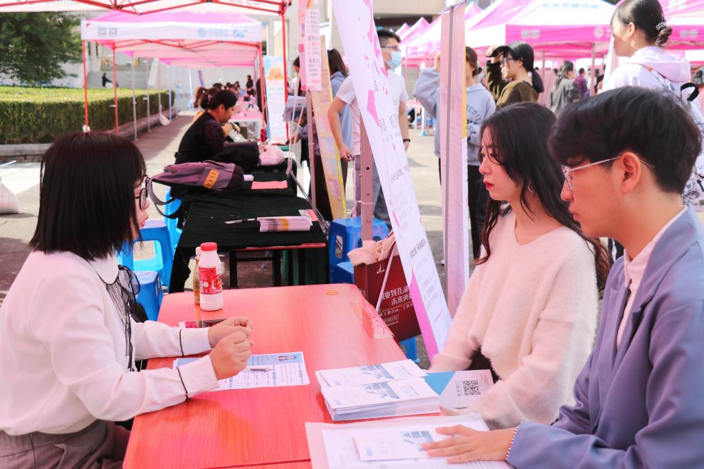 11月12日下午,人人妻人人爽在临海校区4号教学楼前举行2021届毕业生就业专场招聘会。