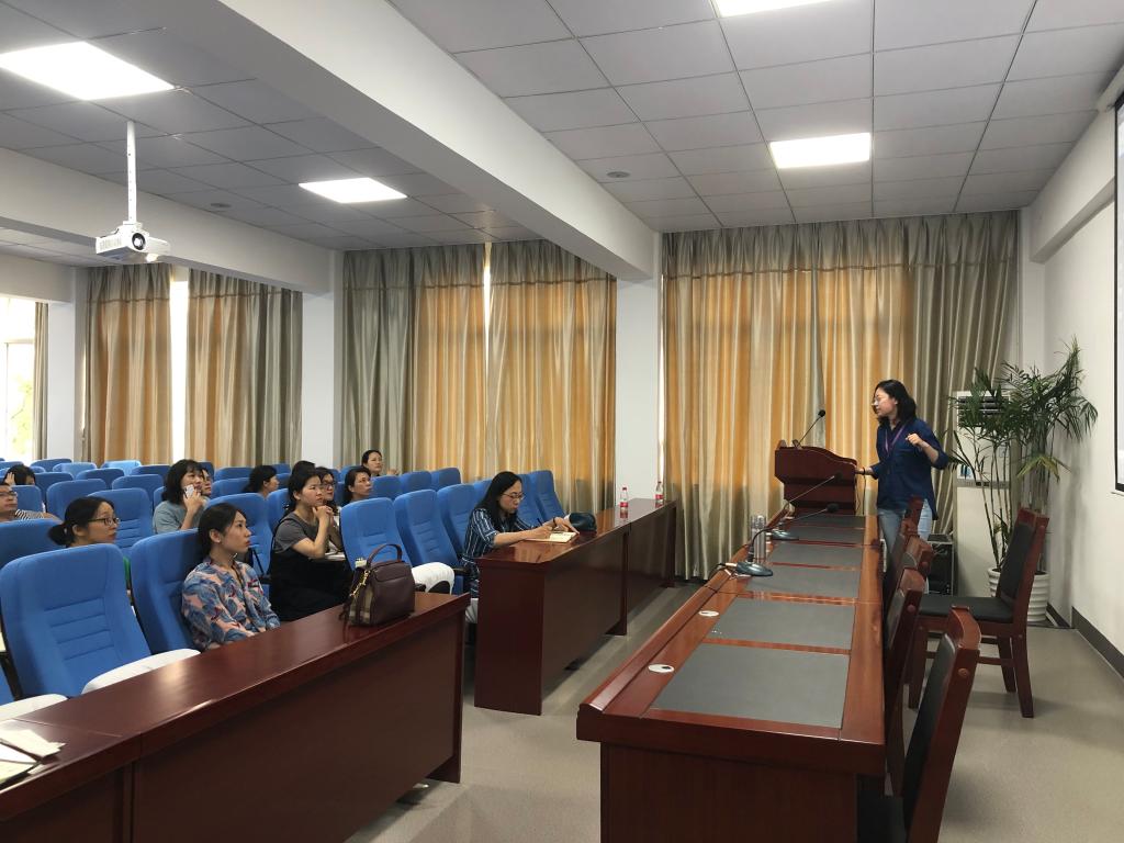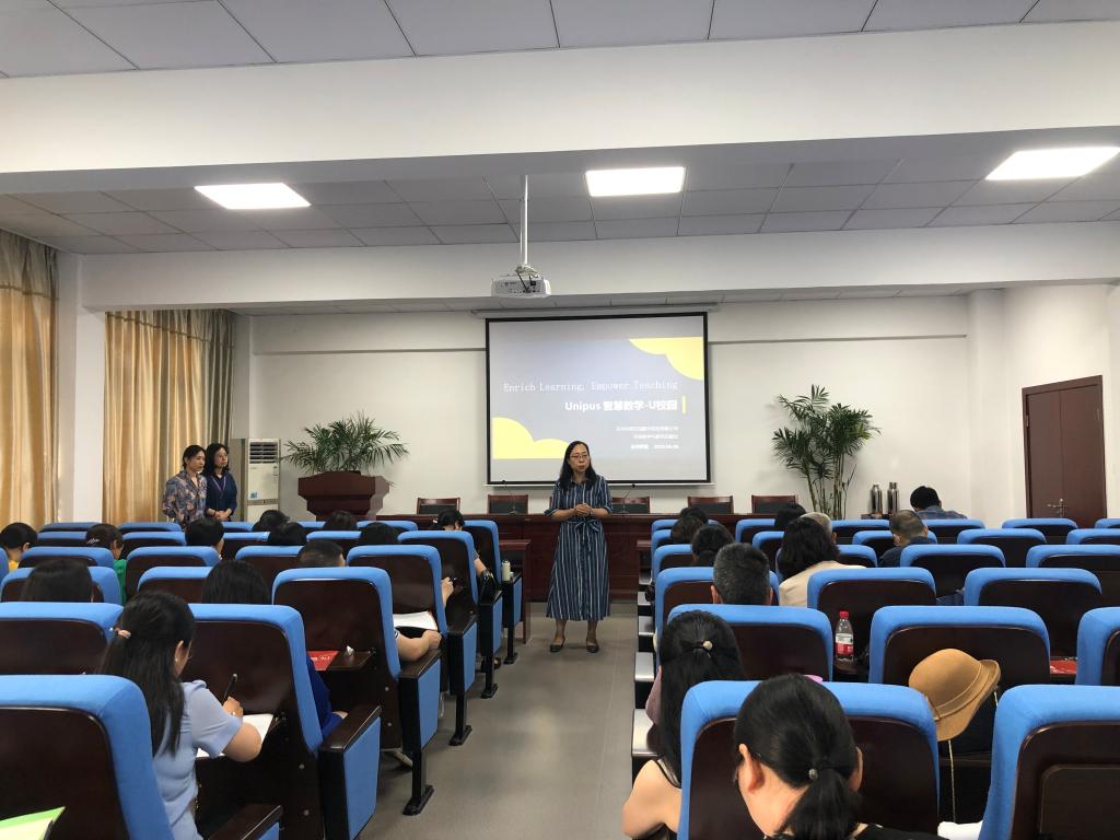 活动中刘富丽强调了大学外语教学面临的三个重要任务: “实现智慧教学”、“培养金课”、“打造魅力课堂”,希望通过智慧教材的运用,助力大学英语课堂教学的多元化。本次活动还请来了外研社的两位专家对智慧教材作了深入地介绍和讲解。智慧教材可通过“U校园”网上教学平台,提供“人才培养+个性化发展解决方案”,通过电脑,手机等设备快捷便利地实现高效的教学管理、丰富立体的教学资源、多元立体的测评手段、互动有兴趣的教学环境,为大学外语的课堂带来多元化教学手段,给学生提供个性化教学。