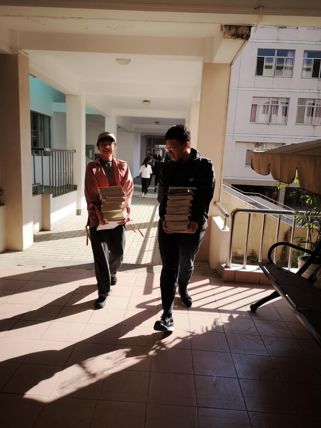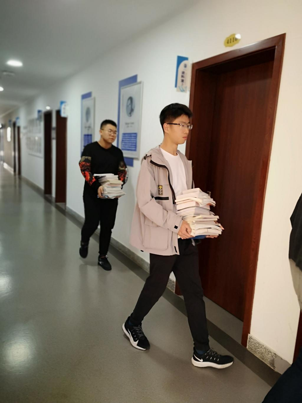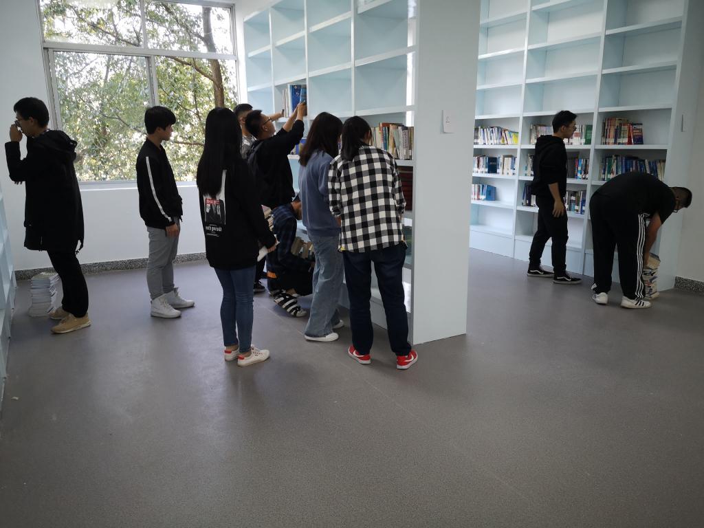 为尽快投入使用,方便师生借阅,学院于11月1日下午,发动师生自愿参加资料室搬迁工作。通知一发出,50多名学生第一时间报名,并按时赶到搬迁地点。外文资料室的图书资料,数量、种类繁多,搬迁工作量大。志愿者在老师的分类指引下,撸起袖子迅速开干,一人一摞,一趟一趟地穿梭于二号教学楼原外文资料室和四号教学楼新资料室之间,整个画面好似蚂蚁搬家,汗水湿透了他们衣服,却没有一个人喊累,大家坚持着搬完所有资料后,才悄悄离去。