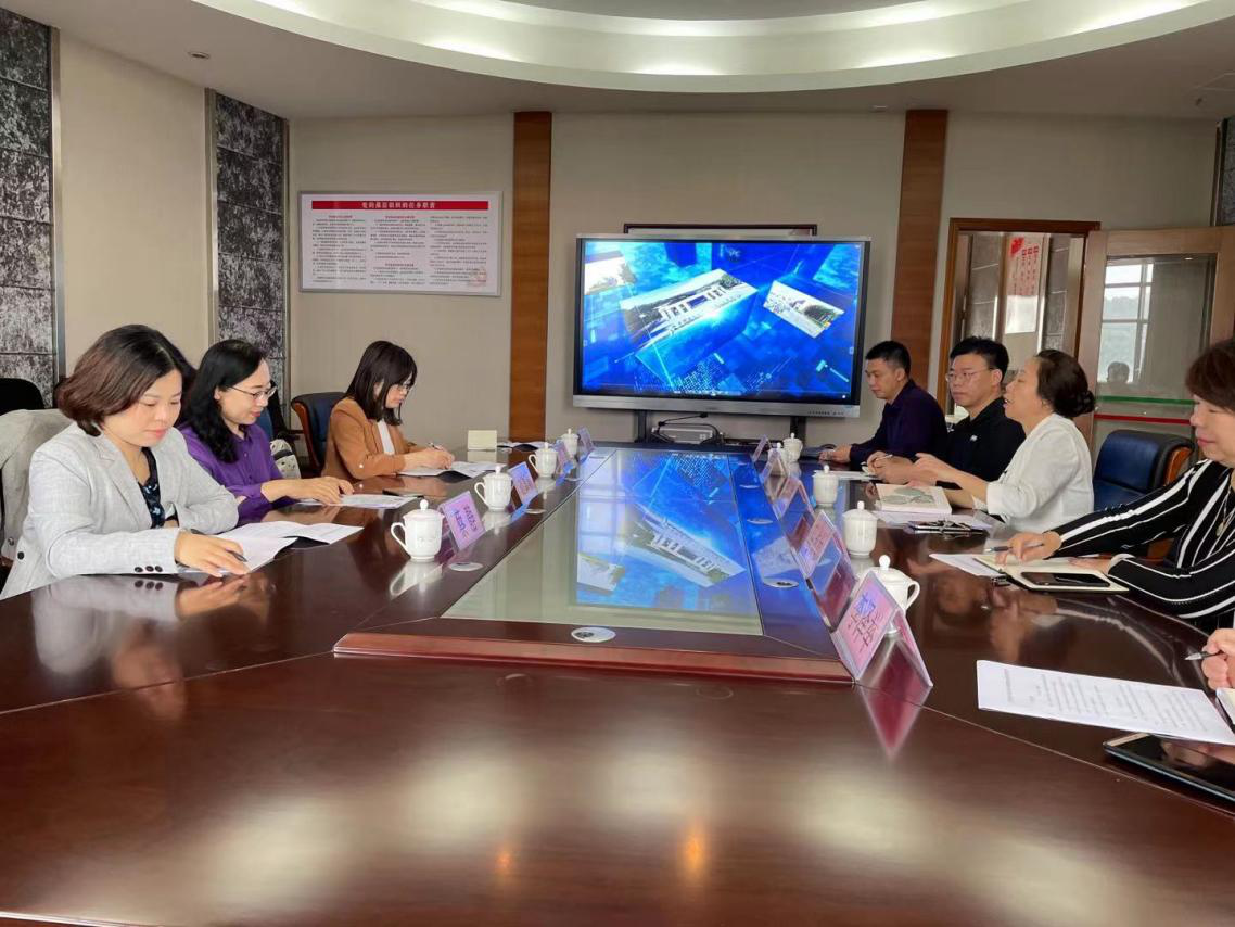 汕头职业技术学院党委书记王小辉、院长吴萍、外语系主任马贞如等热情接待了调研组一行并进行座谈交流。吴萍院长介绍了学院的专业构成、师生现状及未来发展等情况,探讨了如何建设高水平的学科、高水平的专业群以逐步达到本科办学水平的所思所想。