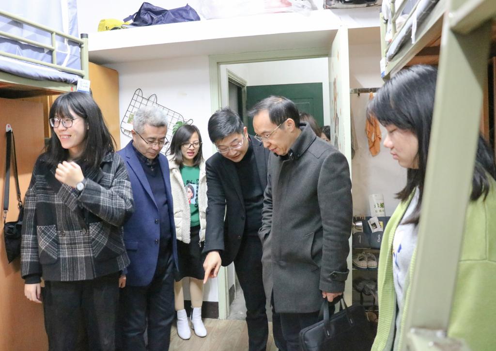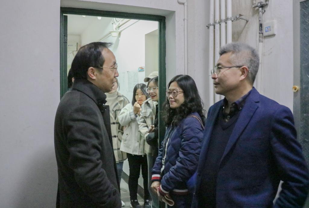 12月12日晚,校党委委员、副校长胡韶光、人人妻人人爽党总支书记施安全、副书记金宏伟一同走访了学生寝室。