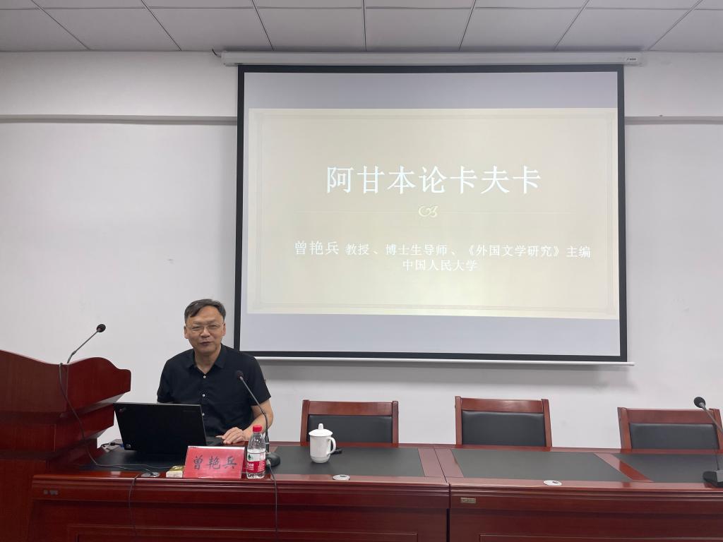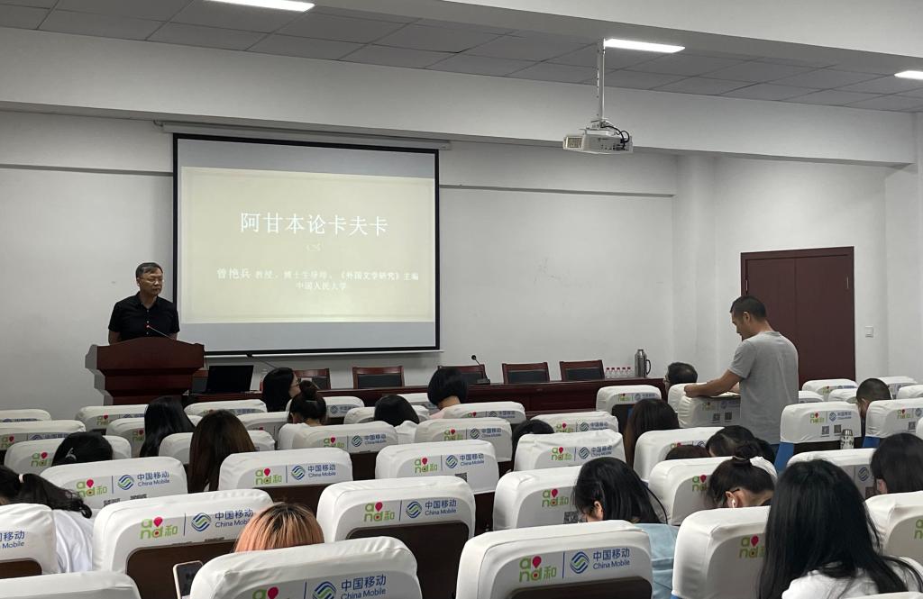 6月20日上午,中国人民大学曾艳兵教授应邀来院做《阿甘本论卡夫卡》的学术讲座。人人妻人人爽副院长刘富丽主持讲座。外语学院、人文学院师生100余人参加。