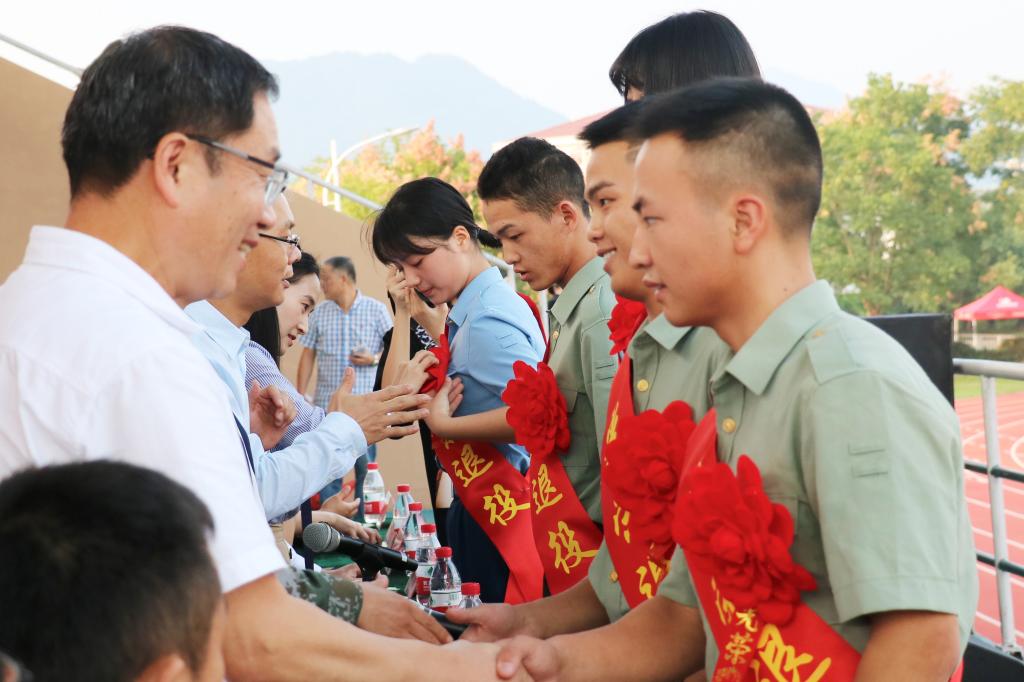 会上,学校还对此次军训过程中表现突出的优秀教官和学生先进个人进行表彰,并为退伍军人佩戴大红花。