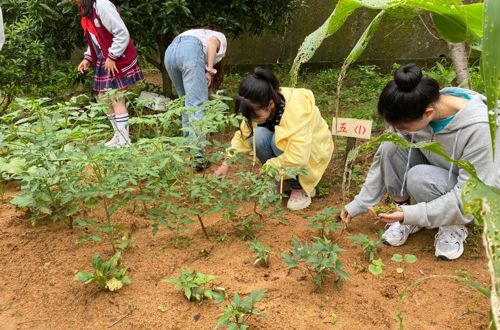 活动伊始,从师生共唱红色歌曲《没有共产党就没有新中国》到学生讲师讲解党旗党徽的历史知识,唤起彼此共同的红色记忆。紧接着,讲课的课堂搬到了田间地头,师生来到学校后山劳动实践基地共同实践,践行发扬垦荒精神,在劳动体会着“一粥一饭,当思来之不易”。