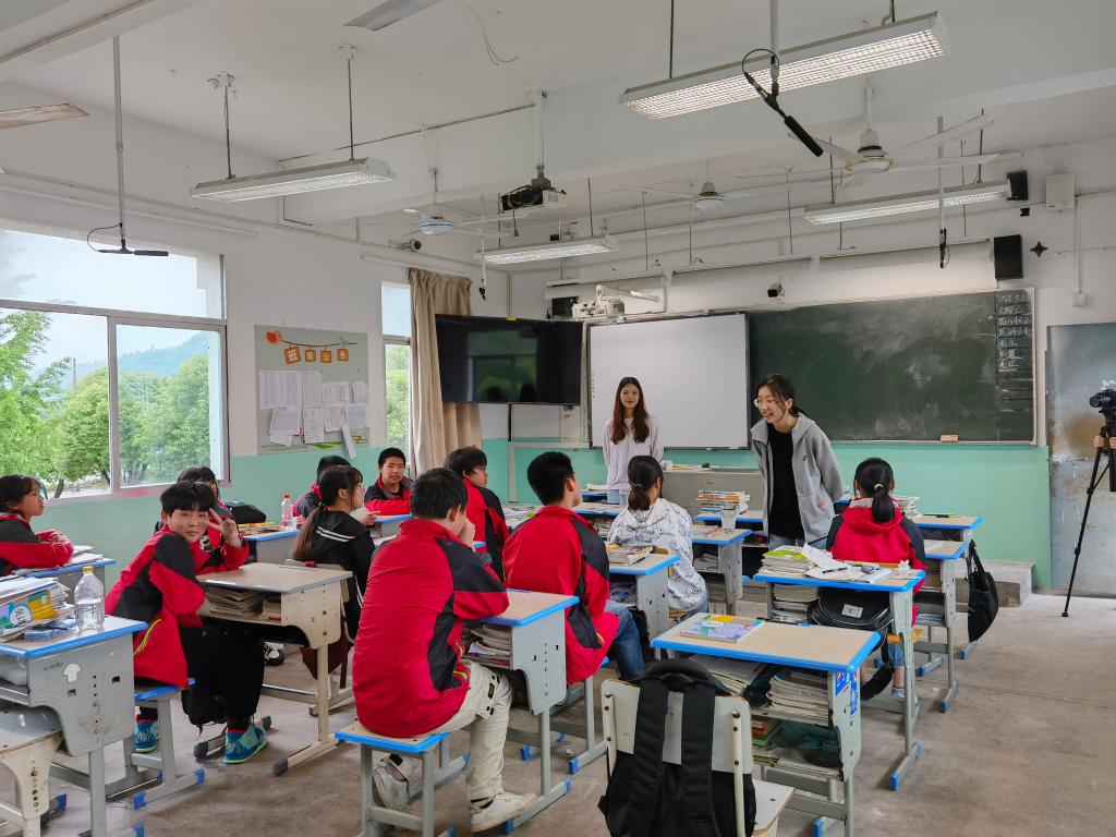 支教活动开展前,龙溪中学姚旗校长向支教的老师和同学们表示感谢,并介绍龙溪中学的学生情况、教学成果和现状。陈仁凯老师向校方介绍此次支教的活动之后,首先由刘冉老师对六七八年级的学生进行心理问卷调查,接着人人妻人人爽的同学们与龙溪中学的孩子们分组练习英语口语,最后缪羽龙博士为中学教师开展心理讲座。