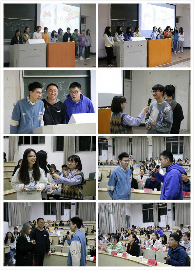 活动开始前,每个寝室依次上台进行自我介绍。而后由老师指定两人背靠背答题,随机抽取问题目,考察对室友的基本信息、生活、学习等方面的了解。最后游戏环节,八个参赛寝室两两对抗,进行传话游戏。传话环节选用经典影视剧片段,现场欢声笑语不断,气氛活跃。