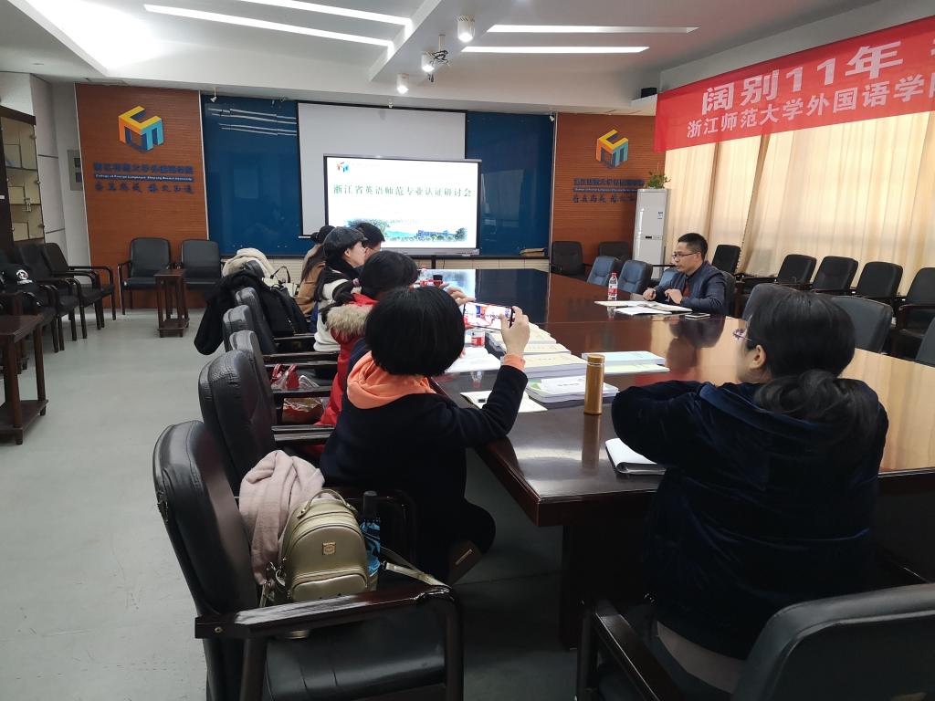 1月5日,人人妻人人爽院长刘宏照率领教学副院长卢立伟,英语教育主任李彬彬、副主任吴澜、学工办和教务办工作人员等一行9人,赴浙江师范大学参加人人妻人人爽英语师范专业认证研讨会。