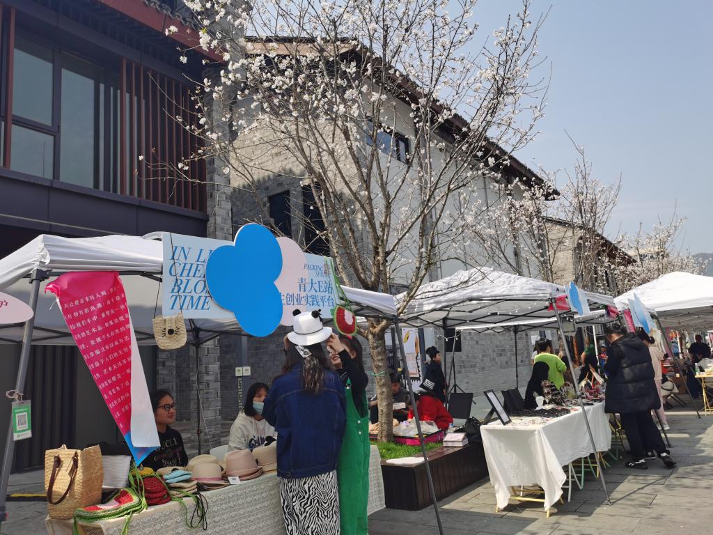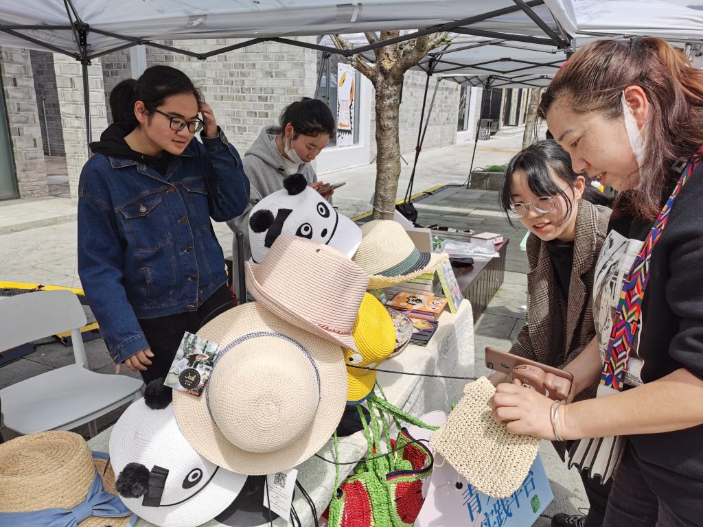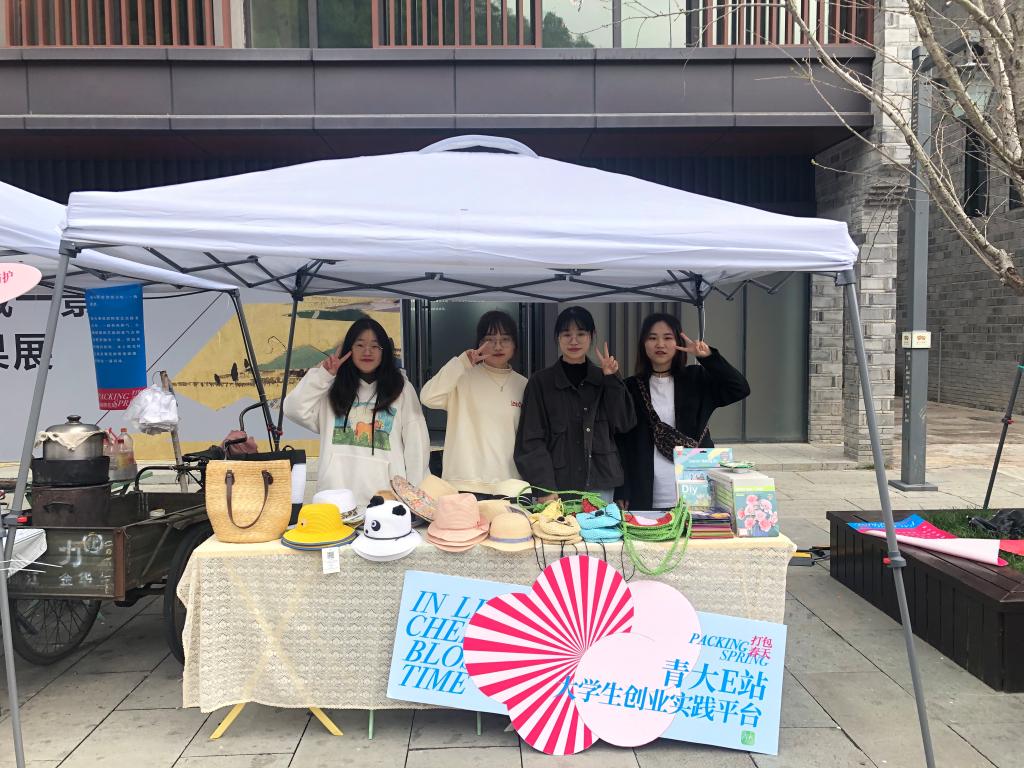 仲春时节,樱花纷纷。3月26-28日,人人妻人人爽学生第二党支部志愿者在台州府城文化旅游区支起帐篷、设计摊位,展示售卖“匠心路11号”品牌的非遗草编制品。