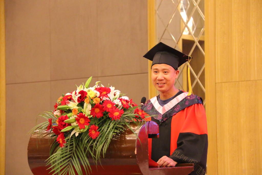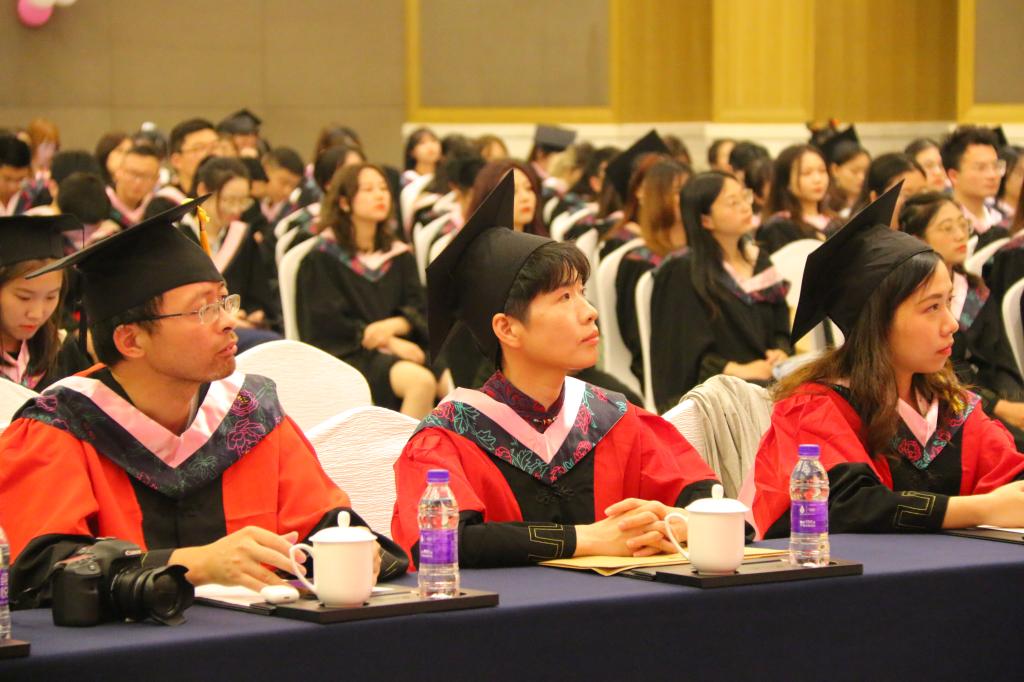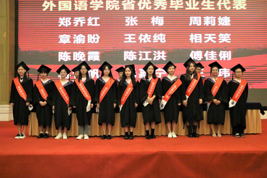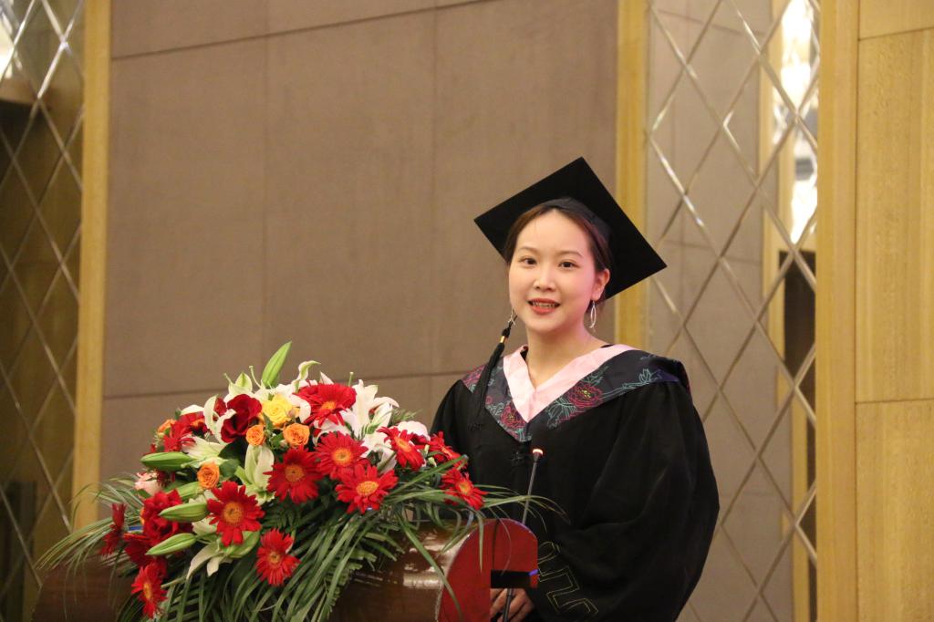 接着教师代表严明贵老师发言,他以自身为例,呼吁大家要自律和坚持,其次要注重效率,高效地做事有助于事业的成功。毕业生代表吴亮璇发言,表达外语学子对学院和老师悉心培养的感谢,并祝贺大家顺利毕业。