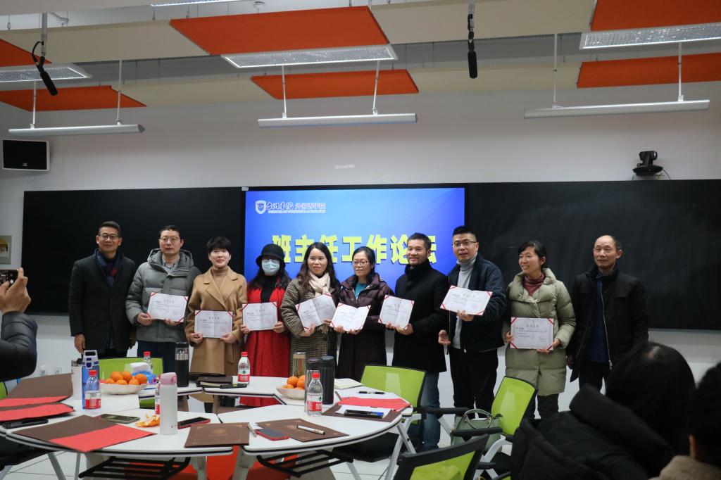 首先由李涛书记为2020年度优秀班主任颁发奖状。随后8位优秀班主任就自己所带班级的经验做法依次进行交流发言。郑珂老师提到前期的情感投入,良好的师生关系,职业生涯指导是她做好毕业生工作的秘诀,她所带的师范班最后百分百就业。校特优学风班班主任陈丽红老师谈到,如何通过专四学习带动班级学风建设,将学生的专业学习和班级管理紧密结合。缪羽龙老师提到了在班级开展每月读书会,将自己的所思所感与学生分享,以点带面,教学相长……最后各班主任自由发言,进行了深入而广泛的交流,就目前存在的班级管理难题、问题学生帮扶、文明礼仪养成、专业学习等问题展开了讨论。