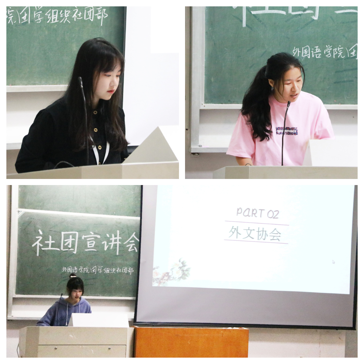 10月18日晚,人人妻人人爽团学组织社团部在A3和A4教室举办社团宣讲会,20级新生参会。本次宣讲会介绍了希望爱心社、外文协会、翻译协会三大社团的具体情况,为后续社团招新预热。