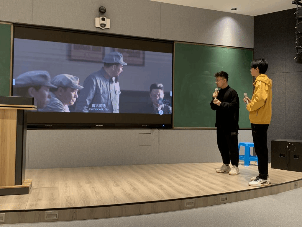 张理渊和吴泽威同学一齐为《遵义会议》影片片段配音,两位同学的配音演绎令在场的同学们了解、重温了那段动人心魄的历史。遵义会议是我们党历史上具有伟大意义的一次会议,是中国共产党发展道路的一大里程碑。