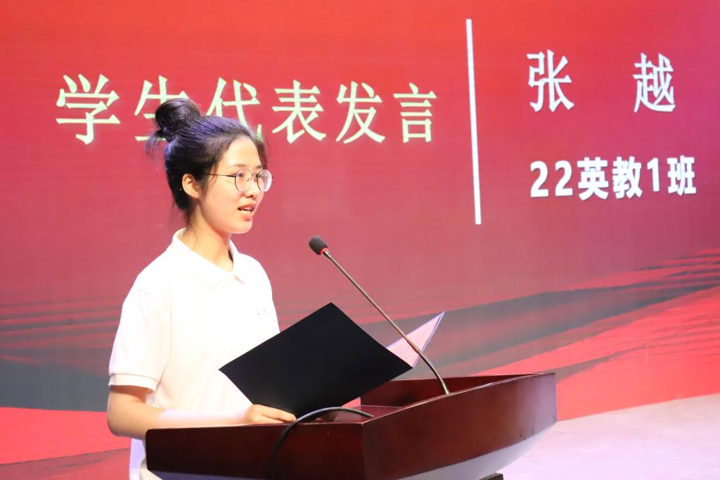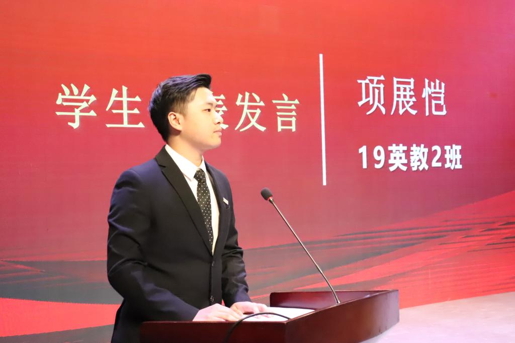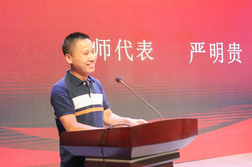 接着,教师代表严明贵发言,他以熟鸡蛋和生鸡蛋为例,用生鸡蛋告诫同学们要学会感恩,珍惜当下;要全面发展,成为一个全面的人;记得天道酬勤,坚持就是胜利。随后,学生代表项展恺、张越先后发言,不时引起大家的共鸣。