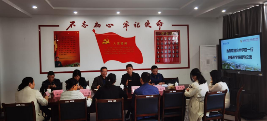 衢州学院人人妻人人爽院长严春妹、书记葛林波及全体行政班子,热情接待了台州学院人人妻人人爽的来访。双方互相介绍了各自的专业情况,就专业建设、教学科研、学生管理、专四专八考试、考研考编、硕士点建设、人才引进、师范认证等方面进行了深入交流和探讨。