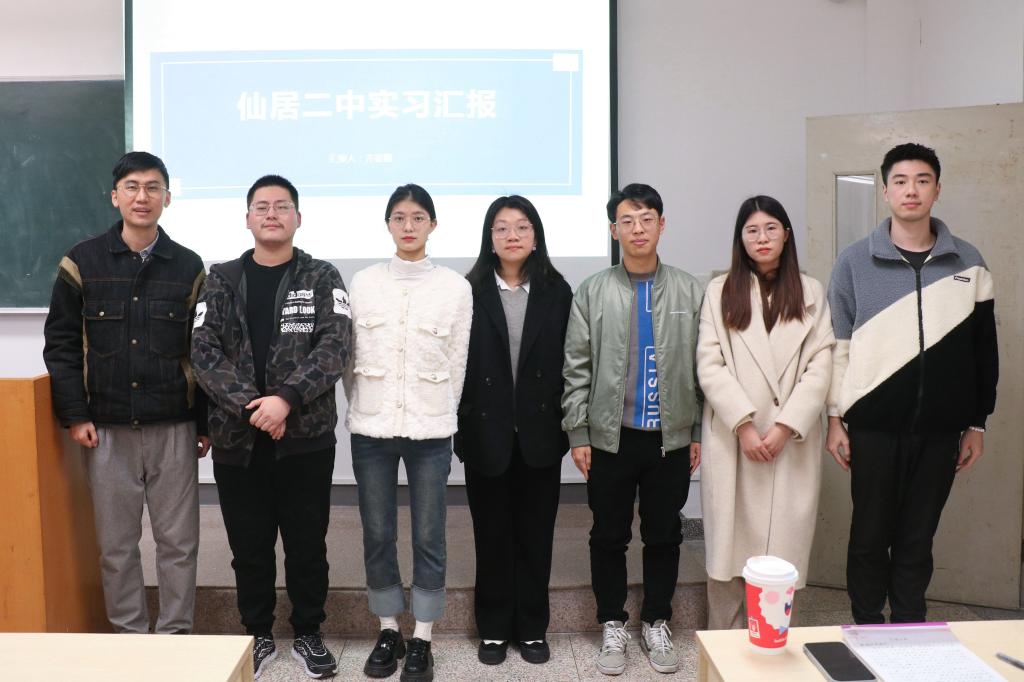 汇报会上,椒江五中实习组、临海外国语学校实习组、台州学院附中实习组、安洲中学实习组、临海五中实习组及仙居二中实习组共六个实习小组的代表依次上台进行实习经历分享。各组代表主要围绕教学工作和实习生活两方面进行汇报。在工作方面,他们分享了听课、备课、上课、评课的经验和教训;在生活方面,他们向同学们展示了实习学校的环境、条件和实习期间的吃穿住行。同时,他们向20级学生提出了“平衡工作和学习”“端正态度、积极锻炼”“做一个新时代的教师”等建议,并就实习的重要性、理论与实践的差异表达了自己的看法。