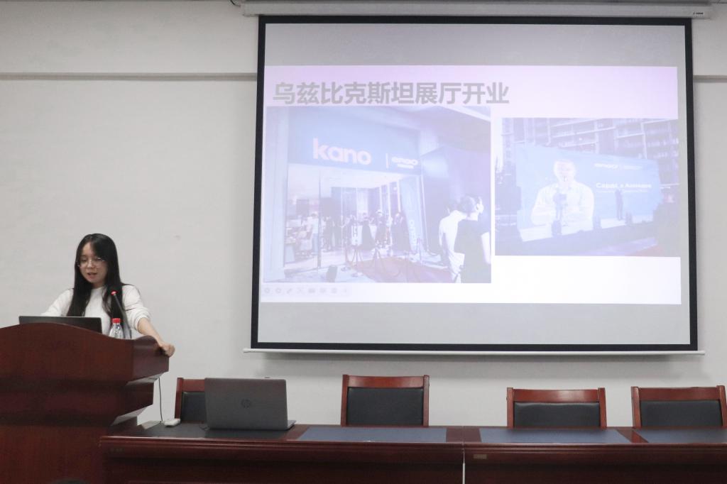 会上,王依纯先从办展、坐展厅、出差三个板块入手,介绍了集团的工作内容。她以集团概况为切入点,对集团补贴、薪资待遇、团队协作的工作方式、集团培训计划、岗位要求及岗位职责进行了详细说明。此外,王依纯还以视频的形式介绍了公司的酒会、半自动化工厂等内容。她强调科尔卡诺集团是一个年轻的团队,并指出集团对年轻人给予的机遇性及设计产品的自主性。最后,集团工作人员收集了对科尔卡诺集团有意向的同学的简历。