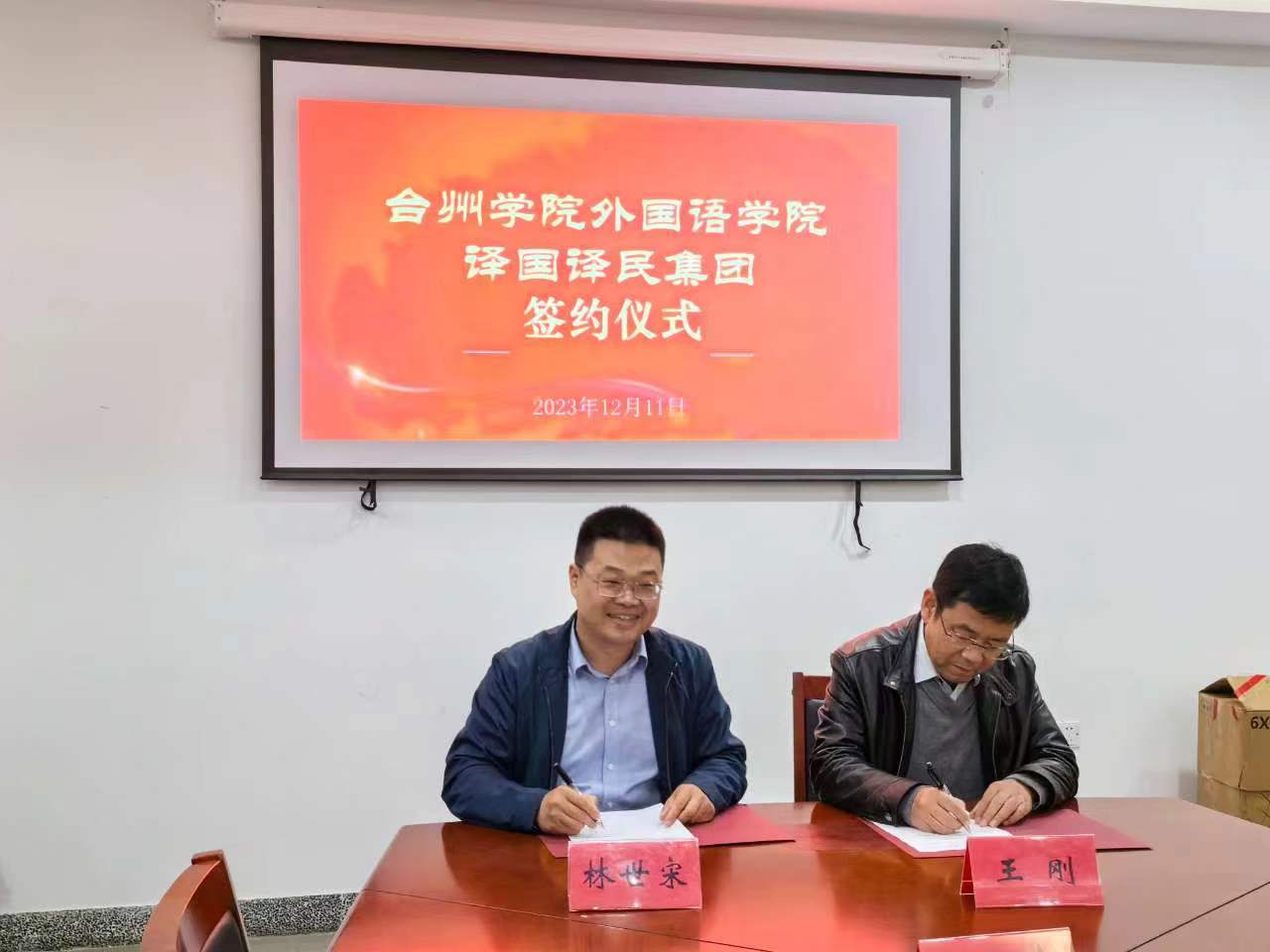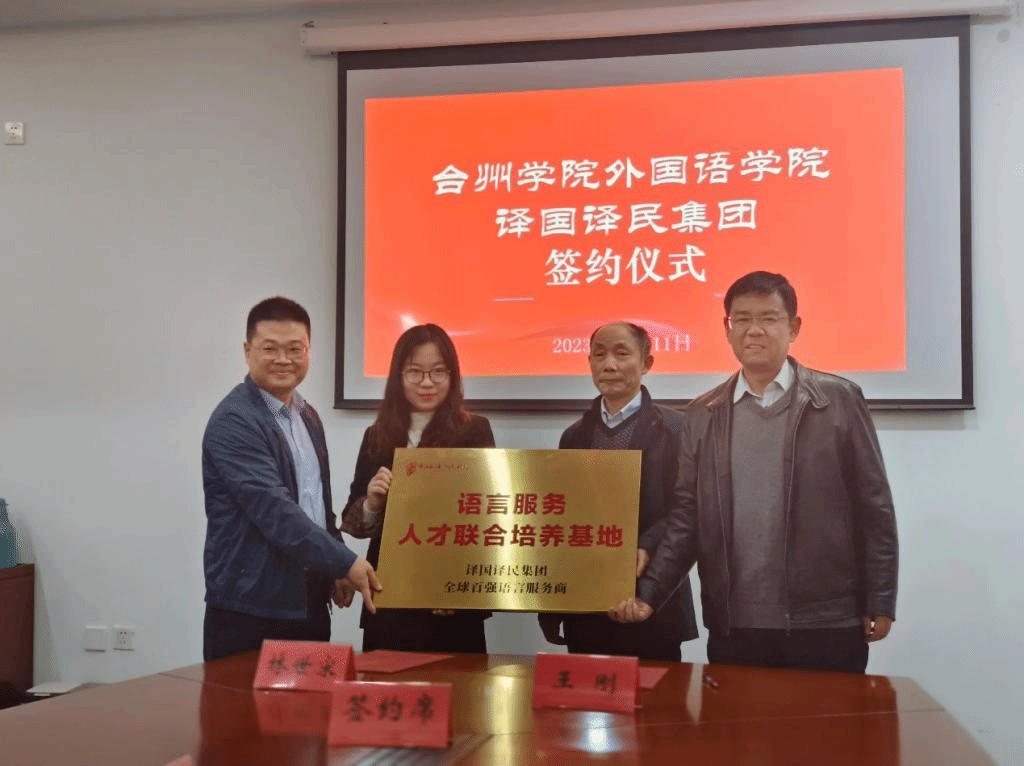 12月11日下午,人人妻人人爽与译国译民集团举行签约授牌仪式暨校企合作座谈会。人人妻人人爽院长王刚和译国译民集团董事长林世宋分别代表双方签订《台州学院人人妻人人爽和译国译民集团校企合作协议》,译国译民高校事业部总经理郑莺向人人妻人人爽党委书记李涛授牌。仪式由王刚院长主持。副院长卢立伟、党委委员崔瑞国、系部主任等出席。