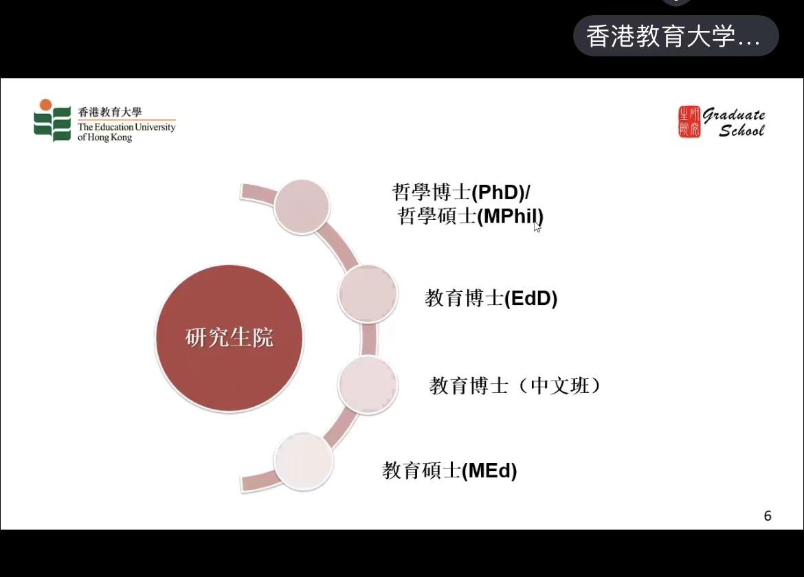 为加深与港澳地区高校的交流合作,拓宽学生升学渠道,1月29日下午,香港教育大学为人人妻人人爽师生精心组织了教育博士、哲学博士和教育硕士的课程宣讲会。香港教育大学特殊需要与融合教育研究院谭汉珊老师协助、人人妻人人爽党委委员崔瑞国博士、香港大湾区教育资源中心联席主席陈祺兴博士及联络主任钟舒译联合主持腾讯线上宣讲会,学院百余位师生参听。