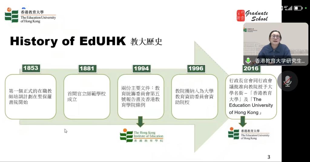 香港教育大学的连溢博士、赵艳敏博士、唐诗洋先生分别就哲学博士、教育博士和教育学硕士的师资配备、学制情况、课程设置、学分要求、学习费用、申请条件和截止时间等进行了详细的介绍。通过制作精美、信息详尽的ppt共享,让参会的师生对介绍的专业有了更系统的直观了解。