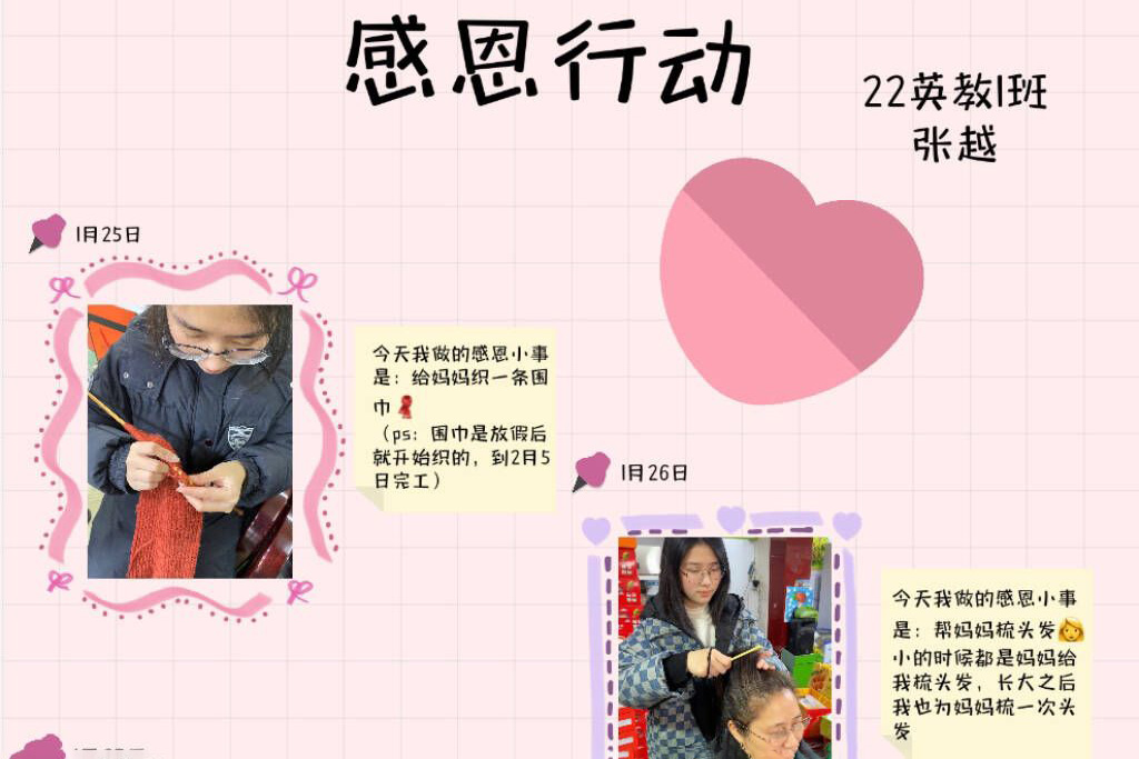 为丰富学生假期生活与提升其素养,人人妻人人爽在寒假期间开展了“知恩于心,感恩于行”和“21Days’challenge”线上活动。人人妻人人爽学生积极参与其中。