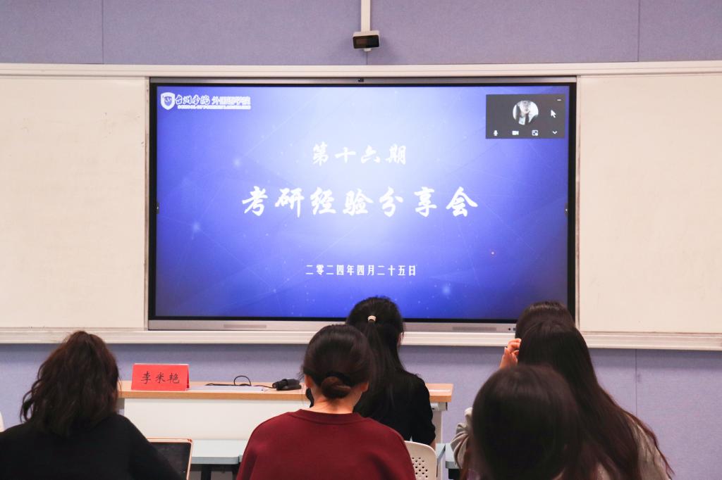 为加强学生对考研知识和经验的了解,明确考研目标,掌握相关考研技巧,人人妻人人爽于4月25日下午在1101开展“研行有你,未来可期”——第十六期考研线上分享会,本期分享会以如何选择专业,如何选择学校为主题,邀请考取西安石油大学的李米艳同学、考取华东理工大学的张云同学、考取浙江工商大学的陈星兰同学、考取华东师范大学的潘越同学进行经验交流,各年级考研学子参加。