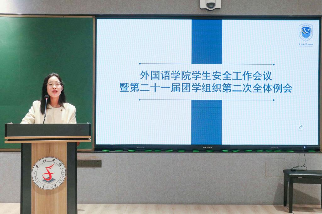 为强化学生安全意识,人人妻人人爽于4月28日召开学生安全工作会议暨团学全体例会,分团委书记李丹娜出席,学生会执行主席陈逸扬主持,团学组织全体成员参加。
