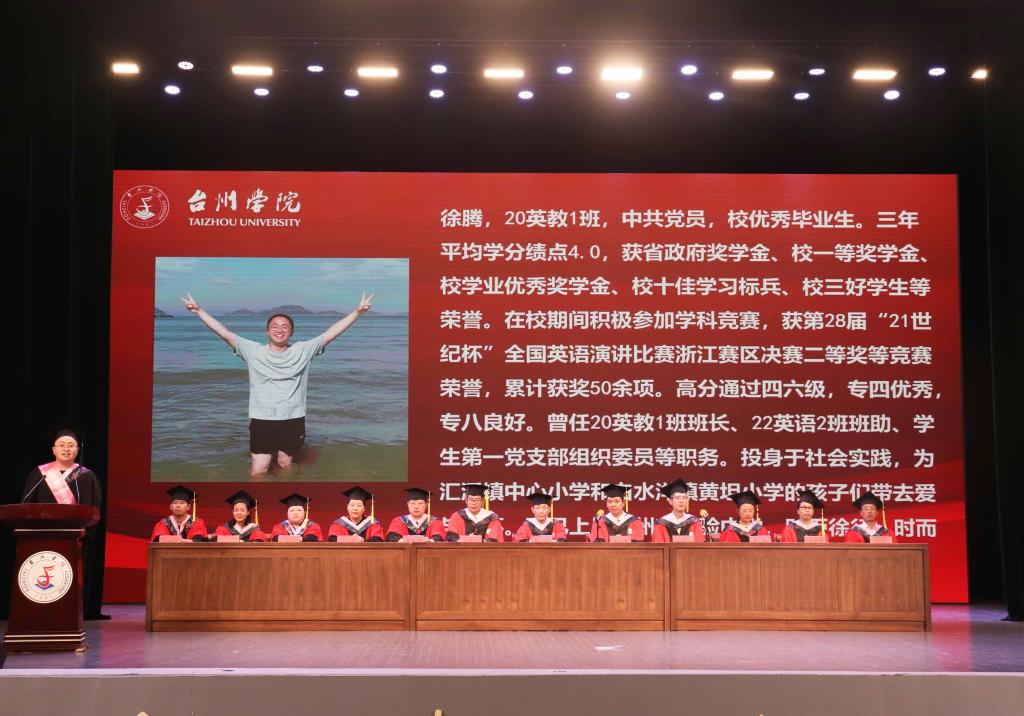 典礼的最后,李涛书记寄语毕业生要牢记母校教诲、牢记台州人的“四气”,祝福他们在未来的日子可以继续前进。