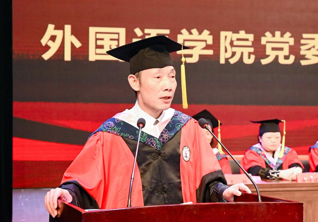 党委委员李彬彬作为教师代表发言。她叮嘱同学们要永远保持对学习的追求和渴望,为实现中华民族伟大复兴做贡献。毕业生代表徐腾用“成长,坚持,期待”总结四年的学习生活,并表达对学校的感谢和对同窗的祝贺。