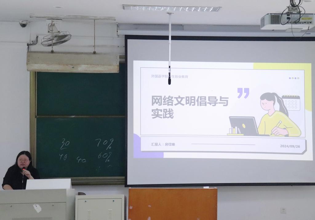党委委员房佳婕为大家讲解了网络文明与安全,通过一系列真实案例,向大家强调了网络文明与网络安全的重要性。房老师还为新生带来了一堂入党教育,向大家介绍了入党的流程及其注意事项,为新生后续入党提供了有力帮助。