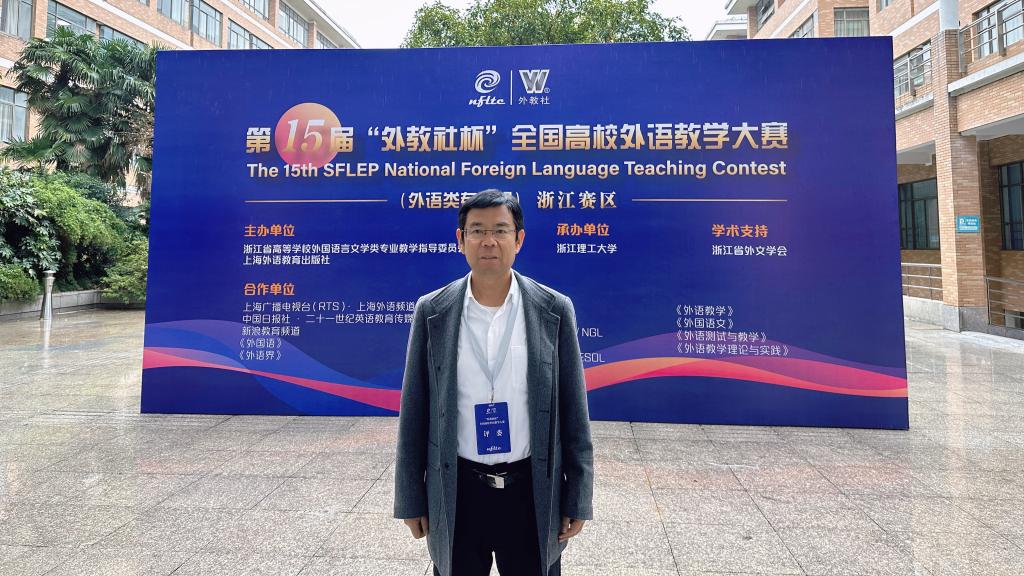 近日,第十五届“外教社杯”全国高校外语教学大赛浙江赛区在浙江理工大学圆满落幕。我校人人妻人人爽王刚教授应邀担任英语专业组决赛评委,同时,也担任该决赛的提问评委。